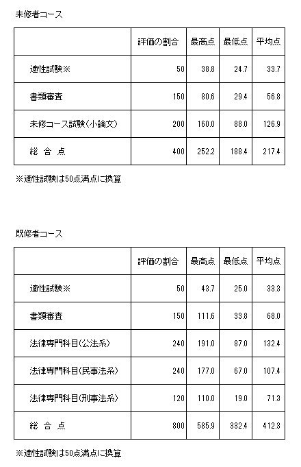 出願期間 | 2016年9月26日(月)から9月30日(金)16時までに郵送必着。 出願者数 未修者コース 43名 既修者コース 44名 ※併願者 30名 |