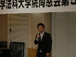 平成23年5月28日、第5回同窓会総会(兼司法試験受験者慰労会)が開催されました。総会には、6期修了生を中心に多数の会員の方々に参加していただきました。また、多数の会員からご寄付を頂戴いたしました。ご出席いただいた会員、そしてご寄付くださった会員のみなさまには、この場をお借りして御礼申し上げます。