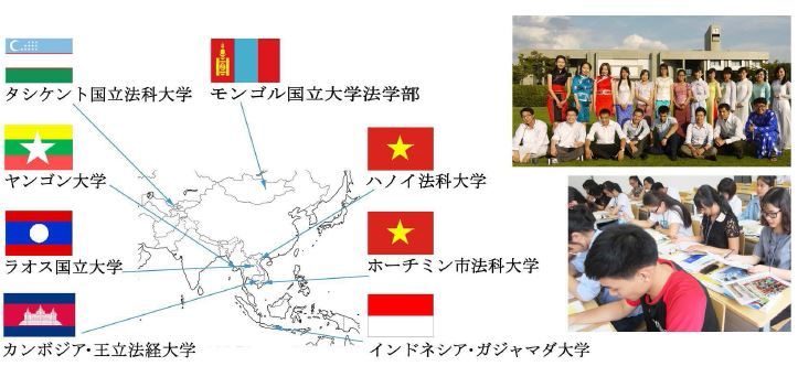 アジア各国の大学と協力して、「日本法教育研究センター」を設立し、日本語により日本法を学ぶコースを提供し、本格的な日本法の専門家を育成しています。同センターはアジア法研究の拠点として、日本では入手困難な各国の法情報も発信しています。